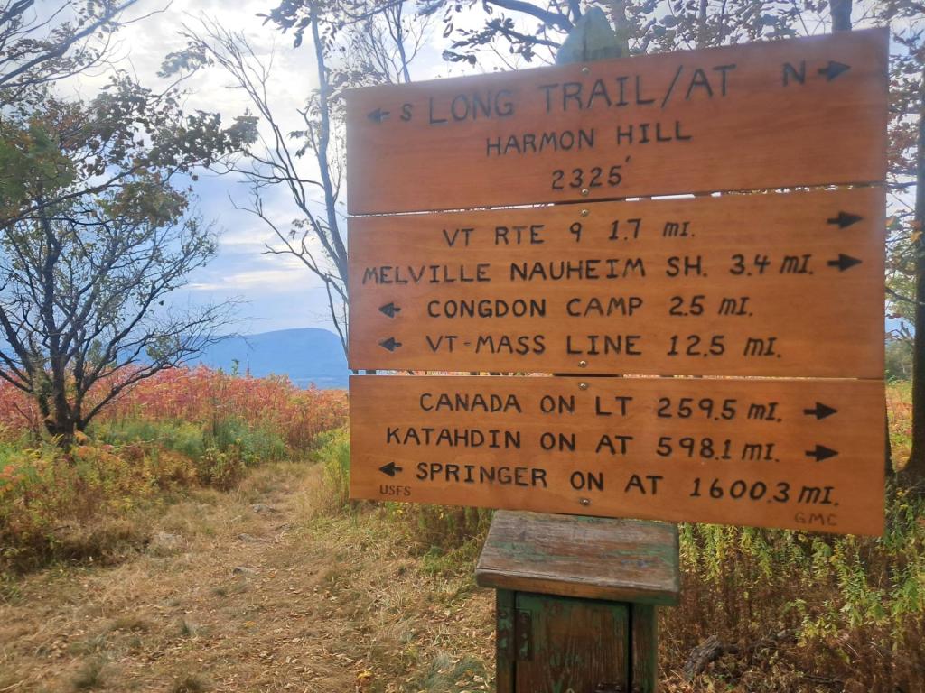 This section of the Appalachian/Long Trail, blazed in white, heads south to the summit of Harmon Hill. The trailhead is found on the other side of Route 9 from the parking area. Here the trail immediately enters the woods and begins its very steep ascent using rock staircases and switchbacks. Extreme caution should be used in wet, snowy, or icy conditions. The grade gradually moderates as the trail bears left and then right, and finally reaches the open summit of Harmon Hill. Prescribed burns, forest fires deliberately set and controlled by trained Forest Service fire crews, maintain the historic opening and the vistas of the surrounding landscape. The view is particularly fine to the west where Bennington, the prominent Mount Anthony, and other hills and mountains of the Taconic Range stand out.