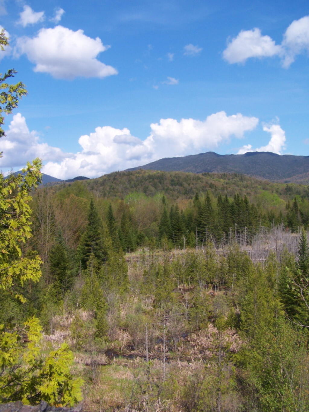 The topography ranges from small areas of low-lying swampland (e.g., along the Raquette and Saranac Rivers) to the highest point in New York State at the top of Mount Marcy. Although there is a considerable variety of topography, it is predominantly high mountain country. Like the topography, the forest cover also varies from pole-size hardwoods to mature, large diameter hardwood and softwood stands to the spruce-fir of the subalpine region.